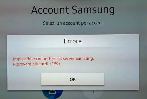 “Impossibile connettersi al server Samsung. Riprovare più tardi. (189)“: messaggio di errore ottenuto utilizzando il pulsante associato all’utenza precedentemente registrata