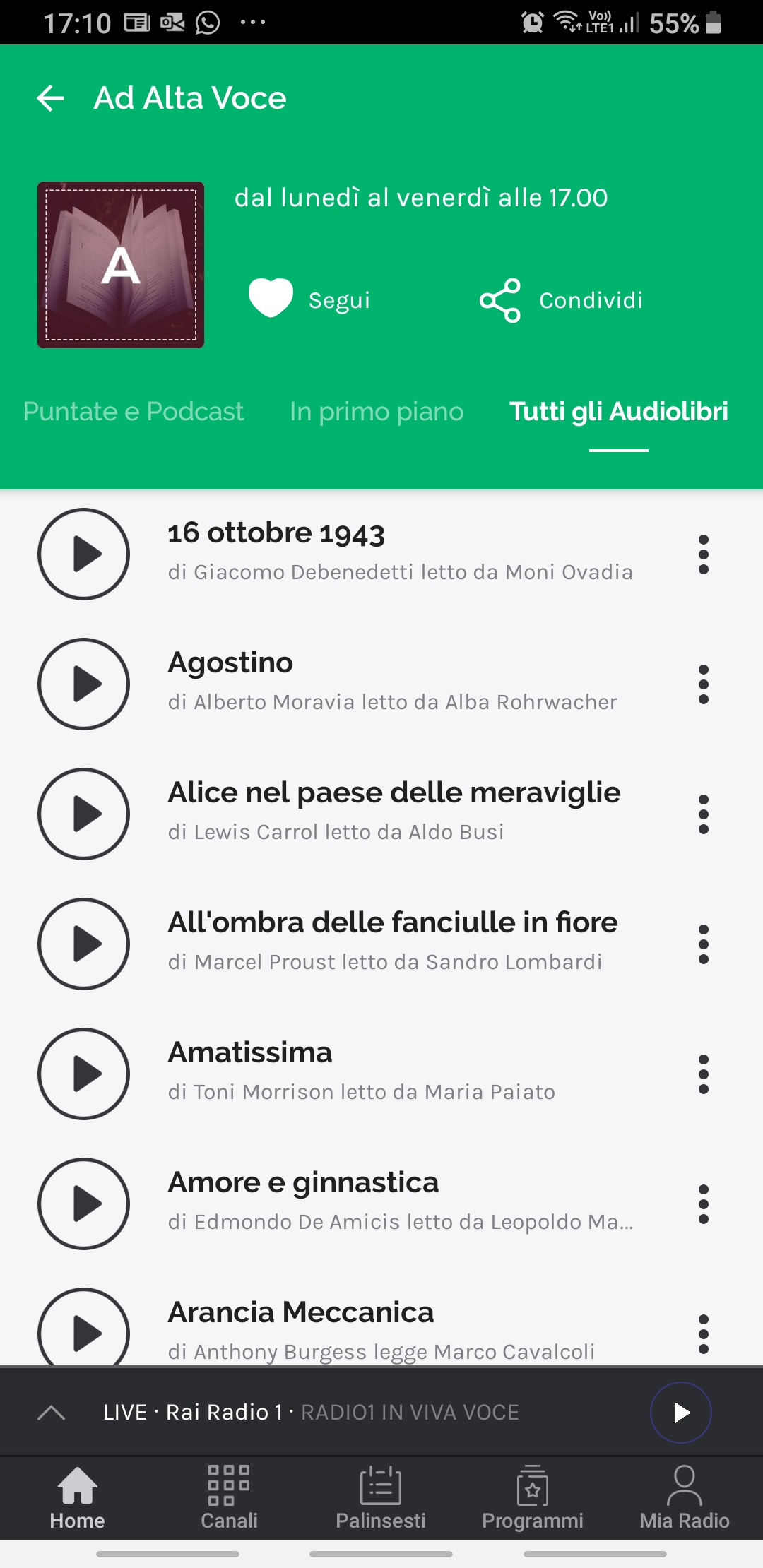 Sullo smartphone risulta più conveniente installare l’app RAI Play Radio (P.S. ora rinominata RaiPlay Sound) presente sul Play Store e poi andare nella sezione Programmi -> Ad alta voce -> Tutti gli audiolibri per trovare l’elenco completo di più di 200 libri!