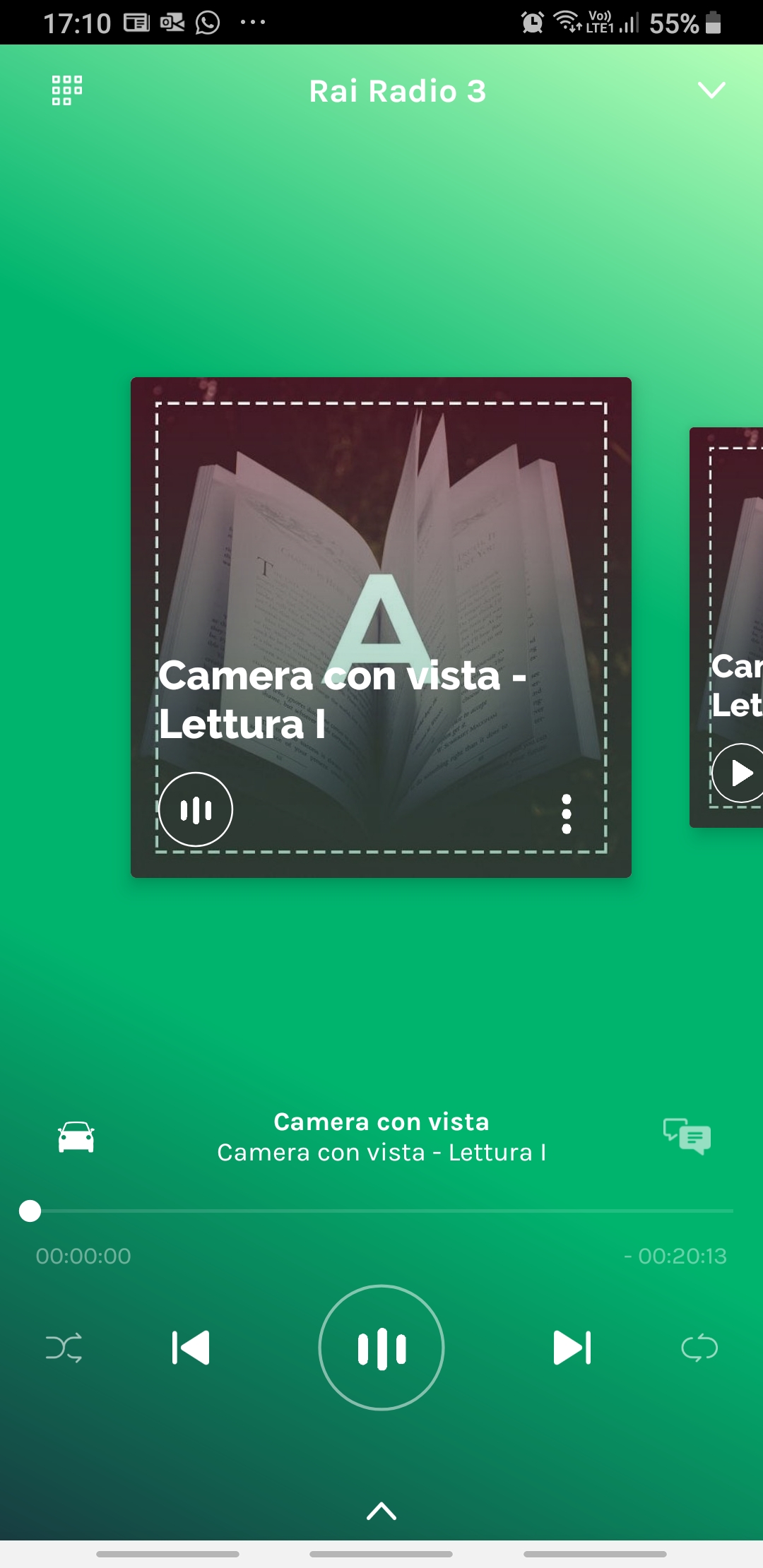 A un successivo lancio dell’app, viene quindi già proposto, nella Mia Home, il link al libro che si sta ascoltando, rendendo cosi agevole proseguire nell’ascolto.