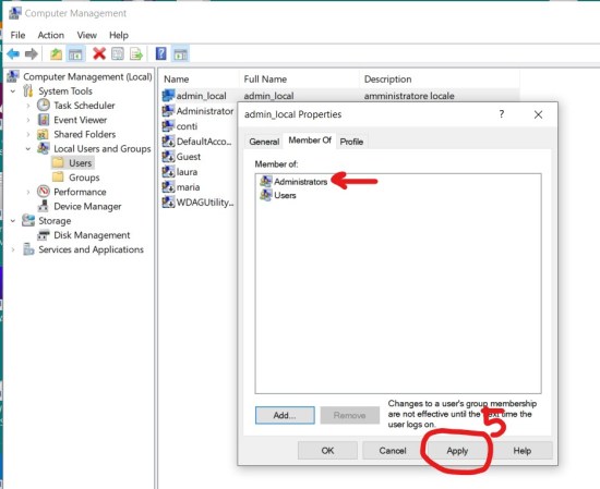 Note that in the Computer Management window it is available the Local Users and Groups section only if the O.S. is Windows 10 Pro (there is not in the Home edition)