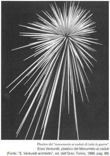 Il tema del dialogo tra spazio e progetto verrà sviluppato in maniera analoga nel concorso milanese al “monumento ai caduti di tutte le guerre” assieme a Maggi e a PirastuUsai dove, con una specie di esplosione, di irraggiamento da un nucleo verso l’esterno, in cui le aste metalliche sono poste come raggrumo di infiniti raggi d’un sole che oltre ad illuminare, sprigiona la sua energia verso innumerevoli direzioni, quasi a testimonianza dell’immensa potenzialità che il tragico evento umano ha assunto.