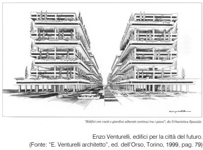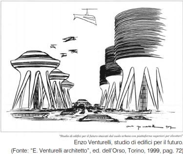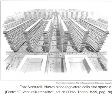 due dimensioni della superficie del foglio dell’urbanista per conseguire una griglia urbanistica tridimensionale che liberi lo schema dal terreno” (ReynerBanham “Le tentazioni dell’architettura”, Ed. Laterza, Bari, 1980, op. cit in “Enzo Venturelli architetto”, ed. Dell’Orso, Torino, 1999, pag. 4).