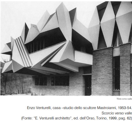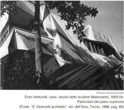 Di particolare interesse è anche la Casa‐Studio Mastroianni, situata in strada antica di Cavoretto 26, Torino, progetto di Enzo Venturelli del 1954. Diverse immagini di quella casa su pinterest:
