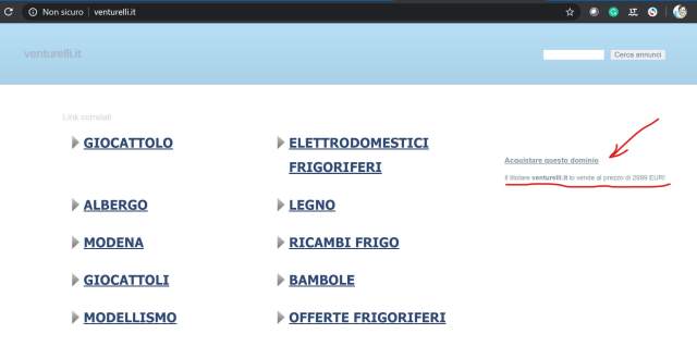Il sito http://www.venturelli.it che solo qualche anno fa riportava informazioni sull’architetto, ora contiene pubblicità e il dominio viene venduto dal titolare a caro prezzo!