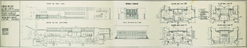 Enzo Venturelli, longitudinal sections, fronts and transversal sections of the acquario-rettilario at the Turin Zoo, 1958. AEV c.3-c.1 © Archivio di Stato di Torino: