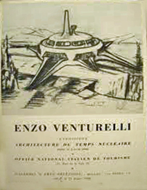 Interessanti sono anche le considerazioni di Fabrizio Aimar apparse in un suo articolo sulla Architettura atomica e urbanistica spaziale : “L’esterofilia è il peggior provincialismo così commentava Cino Zucchi in un mio recente post a proposito delle ricerche sperimentali in bilico fra omaggio e rilettura critica di alcuni architetti del secolo scorso. Niente di più vero. Specie se, nel cammino, ti accorgi come lo scorrere del tempo dilavi i ricordi dei più e il presente ne dissimuli noncurante la memoria collettiva. Questo è quanto accaduto al brillante architetto torinese Enzo Venturelli, visionario espressionista dell’Italia del dopoguerra. Animato da una grande vivacità culturale verso le arti pittoriche di Spazzapan e scultoree di Mastroianni, elaborò un linguaggio in antitesi al razionalismo del Ventennio ma d ‘avanguardia verso i fenomeni internazionali. Affascinato da Le Corbusier e da Fuller, intravede, nel ferrocemento e nelle superfici bianche del Purismo, i mezzi espressivi per coniare una tettonica nuova ed accattivante. I suoi studi sulla Chiesa Spaziale del 1955 anticiparono la realizzazione del Padiglione Philips del maestro svizzero all’Expo di Bruxelles del 1958 e fecero sobbalzare il grande Bruno Zevi, il quale ebbe difficoltà ad inquadrare la sua piccata Casa-Studio Mastroianni a Torino (1953-55). Fu un susseguirsi di schizzi progettuali di straordinaria freschezza, quali la Chiesa con seminario, la Chiesa dei Vescovi e il sospeso Teatro Tartaruga (tutti risalenti alla metà degli anni ’50). Elaborò teorie rivoluzionarie sulla città contemporanea, stilando un Manifesto dell ‘Architettura dell’Era Nucleare custodita all’interno di una visione urbanistica utopica, fatta di piani per la libera circolazione del traffico e l’evacuazione dello smog. A Parigi, nel 1963, i suoi lavori vennero esposti accanto alle fotografie della Piazza dei Tre Poteri di Brasilia a firma di Niemeyer e suscitarono vasti dibattiti a livello europeo. L’eco dei suoi lavori arrivò anche negli USA, in cui si recò dietro invito nel 1958, e gli venne offerta una cattedra d’insegnamento a Detroit. Venturelli, troppo timido e legato alla sua Torino, rifiutò la carica e diverse commesse estere, riducendosi a Nemo Propheta in Patria.