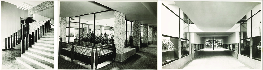 Interiors of the acquario-rettilario, 1960: entrance hall, central corridor on the ground floor and raised crocodile cage. AEV b.20 © Archivio di Stato di Torino.
