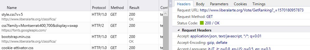 Le URL su cui effettuare la GET risultano ovviamente visibili da qualsiasi browser andando nella sua sezione per sviluppatori, dove è possibile visualizzare i messaggi che transitano in rete quando si effettua, ad esempio, una votazione o si richiede il punteggio corrente (e.g. in Chrome o in Edge: More tools -> Developer tools [IT: Altri strumenti -> Strumenti per sviluppatori]).