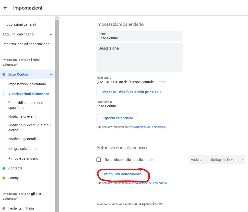As for events, you can share the Google Calendar even between different accounts. However, those will be static entries and changes in one account will not be reflected in another one. Therefore it is possible to view the Google Calendar from Outlook but every change you can make or new events will not be synchronized … so better not do it!! In fact, the only way to see Google Calendar in Outlook is to use the create in Google Calendar a sharing link that however allows only to read and not to write in that Calendar.