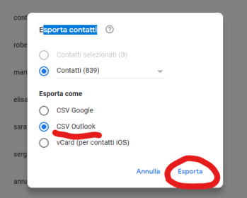 In this article it is suggested to “try downloading this sample CSV file and copying the information from your CSV file to the appropriate columns in the sample CSV file” but the procedure of editing the excel file of your contacts with that sample one seems to me really ridiculous so I did not. The format with which Google saves contacts as CSV for Outlook should be well known and already having to do a procedure of converting to CSV UTF-8 with Excel would seem to me not due but, okay, I did it anyway … but nothing more!