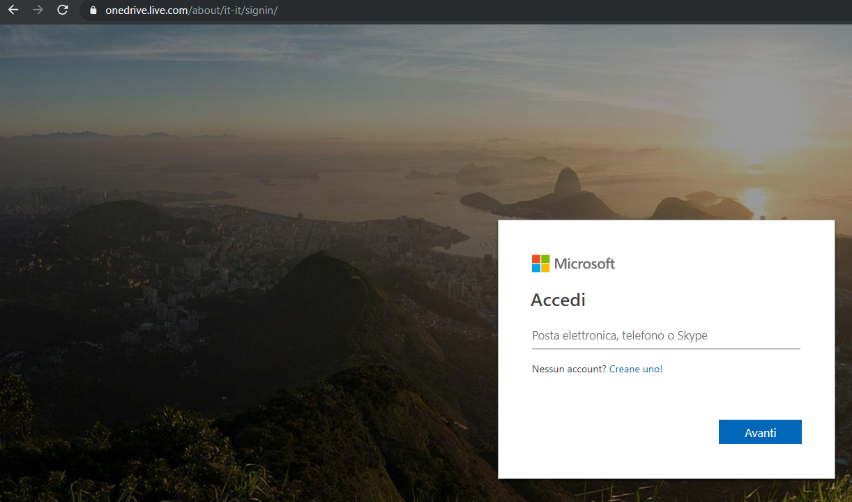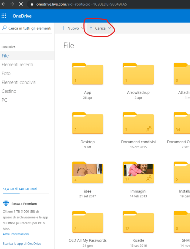 Caricamento del file utilizzando un browser e accedendo al sito https://onedrive.live.com/ (1)