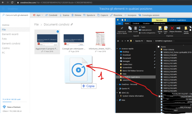 Trasferimento di un file su OneDrive tramite spostamento (e.g. con drag&drop) nella cartella, presente sul proprio PC, sincronizzata su OneDrive