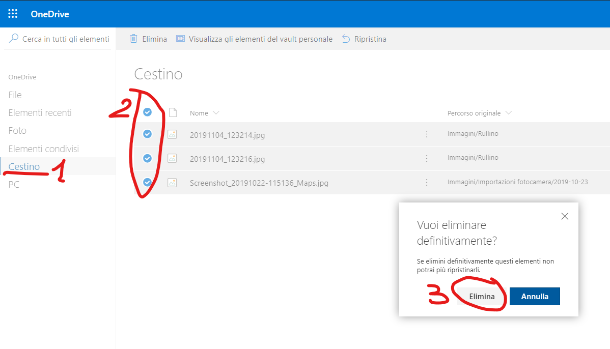 Anche in questo caso lo spazio fornito gratuitamente è limitato (5 GByte) e quindi potrebbe non esserci più spazio sufficiente per contenere il nuovo file che si intende condividere per cui può essere opportuno liberare spazio: il primo posto dove agire è il cestino, dove vengono messi tutti i file cancellati ma non ancora buttati via definitivamente: