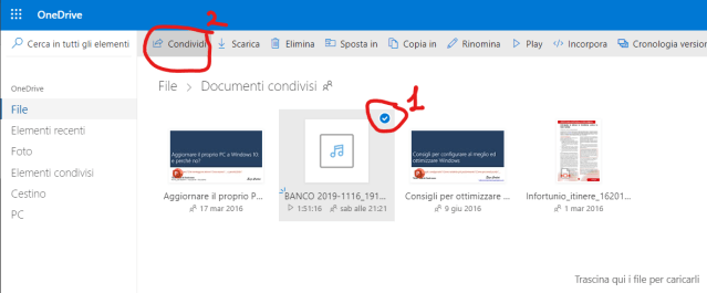 Caricamento del file utilizzando un browser ed accedendo al sito https://onedrive.live.com/ (2)