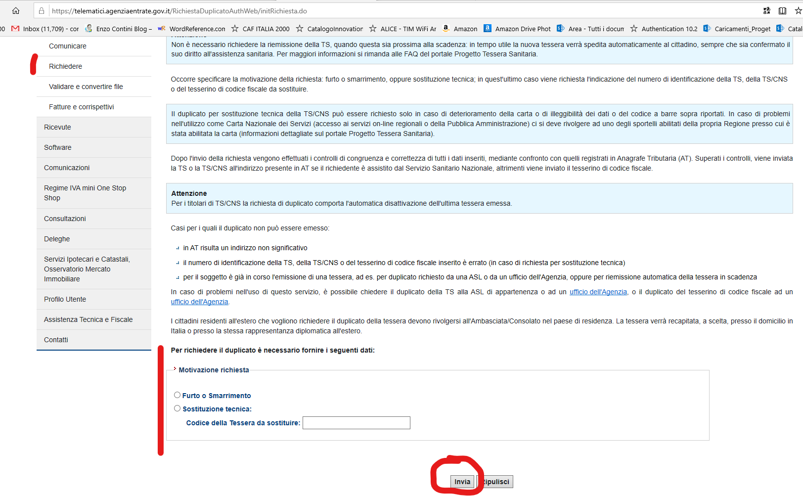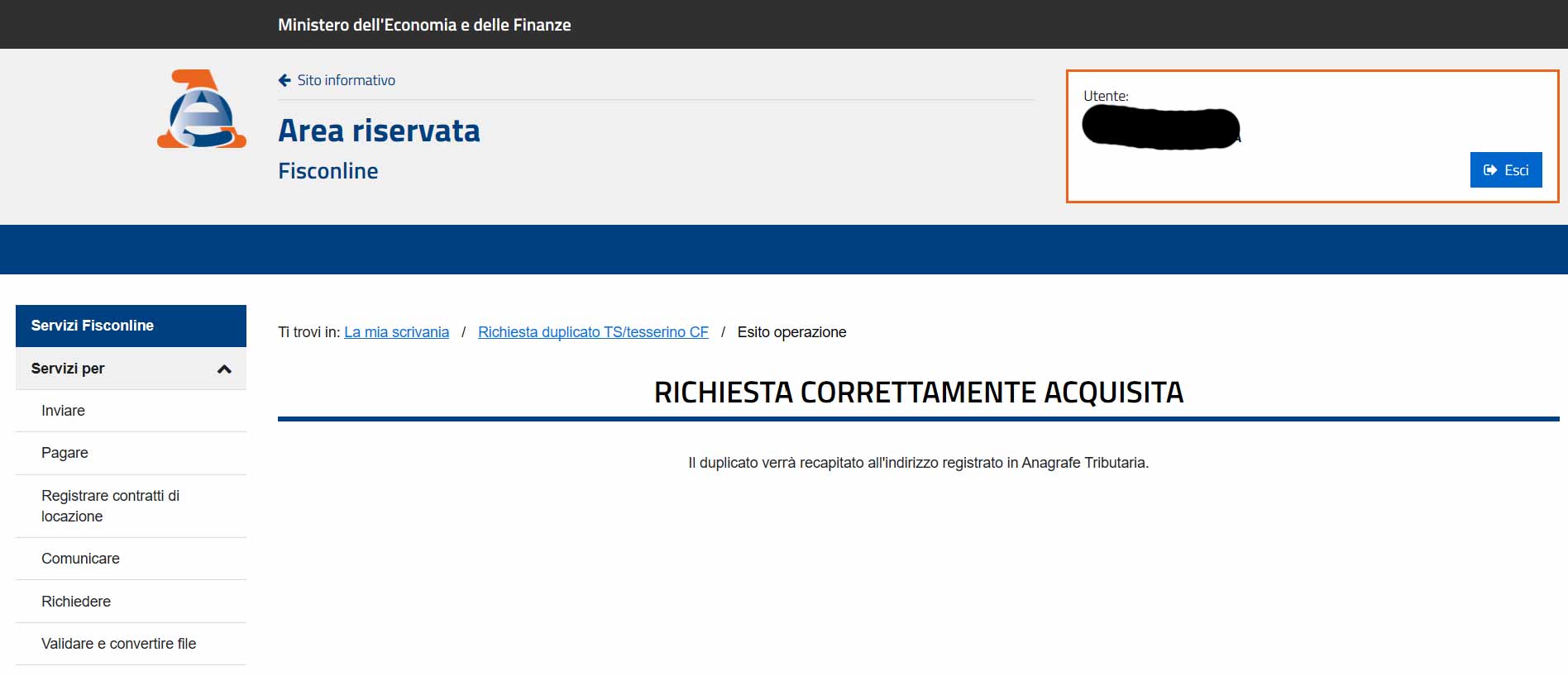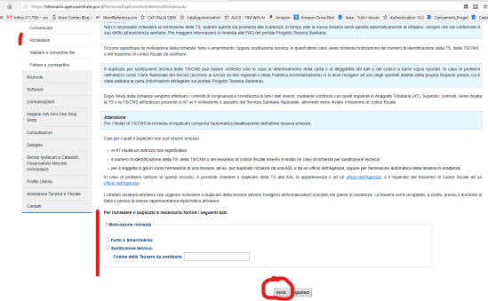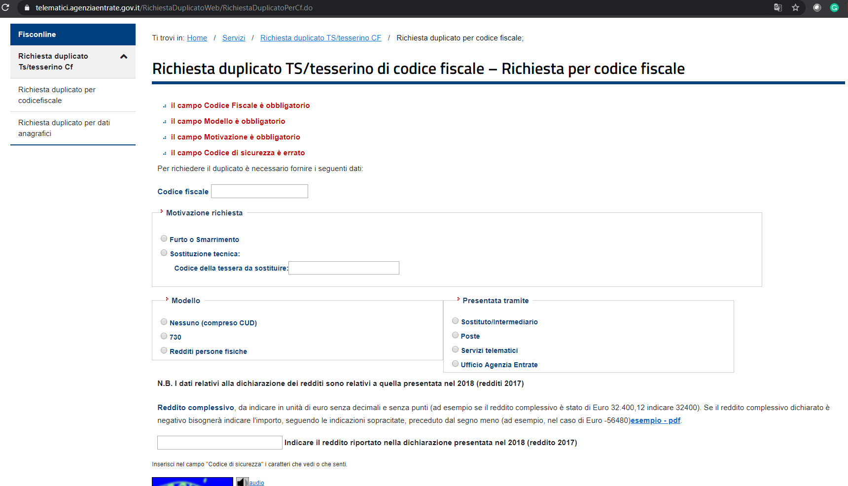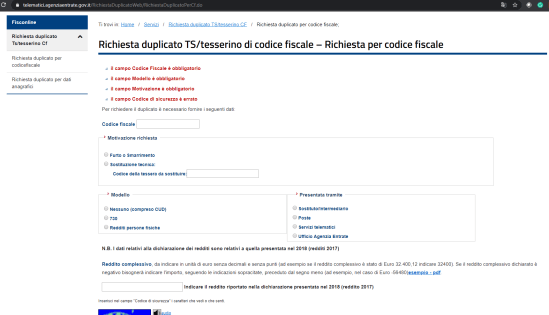 Tuttavia ho sperimentato che, talvolta, pur compilando correttamente i dati richiesti, tale procedura non va a buon fine! Diversamente, autenticandosi nel portale ed accedendo poi alla sezione specifica per la richiesta del duplicato, esiste una procedura più semplice, che non richiede nessun dato specifico: