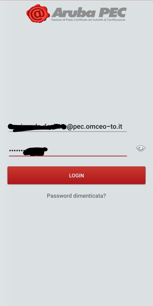 - Password: la password assegnata alla casella PEC
