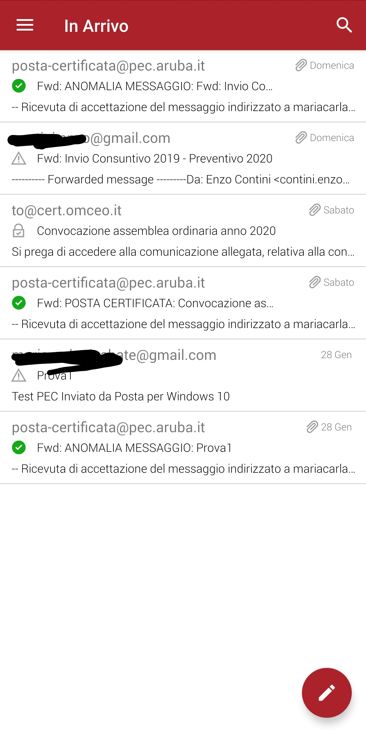 Nota – Ho provato anche a configurare sul mio smartphone quella PEC in altri client quali, ad esempio, quello dell’app Outlook. Tuttavia, sebbene si vedano le email ricevute, poi non si riescono a leggere i loro contenuti certificati in quanto il formato del file allegato non risulta interpretabile. Sicuramente ci sarà un modo per fare funzionare a dovere la lettura di PEC Aruba anche da queste app, ma perché sbattersi quando c’è una app sviluppata da Aruba stessa che già subito ti fa vedere il contenuto della email certificata?