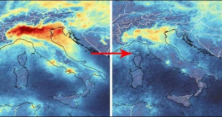 Dalle analisi delle immagini da satellite risulta una notevole diminuzione del livello di inquinamento in tutta la Pianura Padana. Già, … attività industriali chiuse, poche macchine …