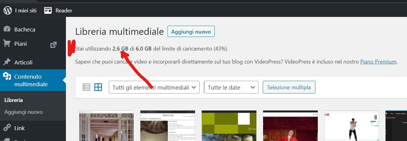 You have just to go to the Multimedia content/elements (IT: Contenuto multimediale/Elementi multimediali) section from the WordPress Administration site: