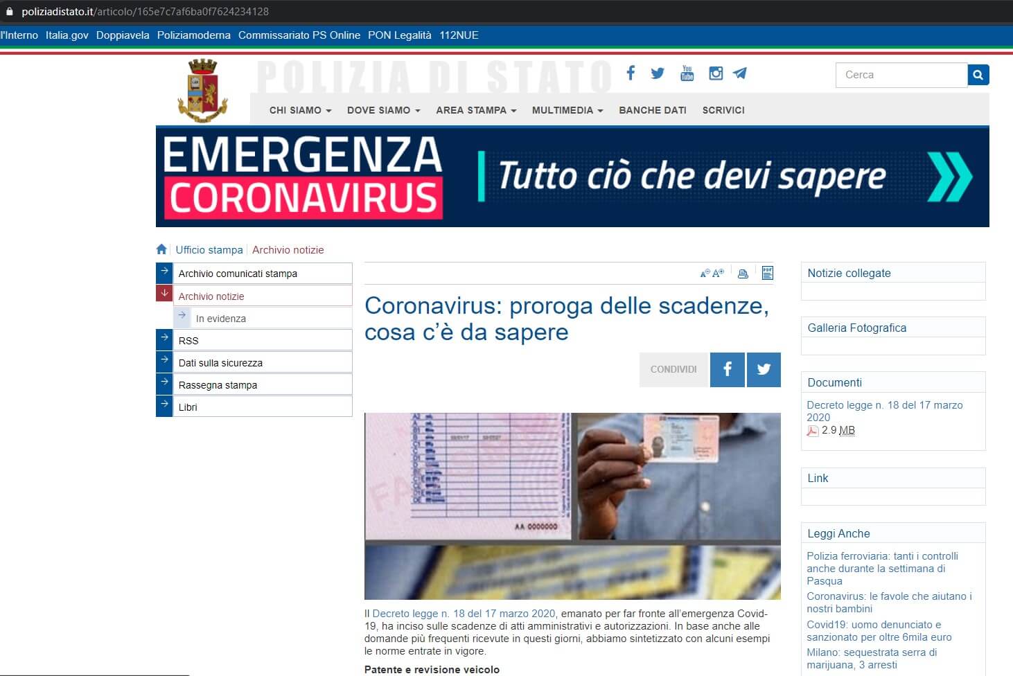 Il sito della polizia di Stato riassume in modo chiaro tute le proroghe sulle scadenze che sono state emesse . In particolare, riporto quelle che reputo di maggior interesse, ovviamente rimandando al sito per ulteriori dettagli e per un elenco più completo
