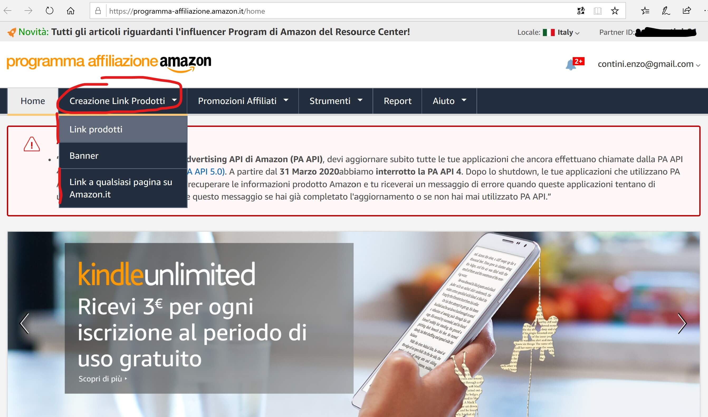 First of all, you need to head to Amazon.com Associates Central and sign up for an Amazon Associates account. The Amazon affiliate program site has possible different links depending on the country [IT: Programma affiliazione Amazon]. If you already have a Amazon.com account [IT: Amazon.it account], you can sign up with that and save yourself a little time. Therefore, you can use the same credentials you already use to login in to the Amazon shop.