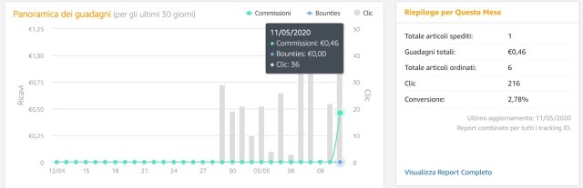 In the meanwhile, on the new Amazon I just joined because of a product purchased through my link I received 0.46: