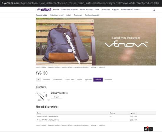 Si tratta dello strumento denominato Venova e pubblicizzato in questa sezione del sito. Come indicato nella pagina del sito italiano della Yamaha … anche questo non tradotto in italiano!! Ancora più incredibile dal momento che invece le altre sezioni del sito sono, come uno se lo aspetta, tradotte nella lingua specifica scelta.