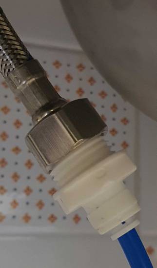 Anche se non esplicitamente indicato nelle istruzioni, è importante sapere che le piccole clips rosse fornite nel kit servono per bloccare il tubo blu dopo che questo è stato inserito nel raccordo tramite una semplice pressione. Se si omette di mettere tali “fermi”, quando l’acqua va in pressione aprendo la valvola per l’afflusso dell’acqua, la giuntura perde acqua!!