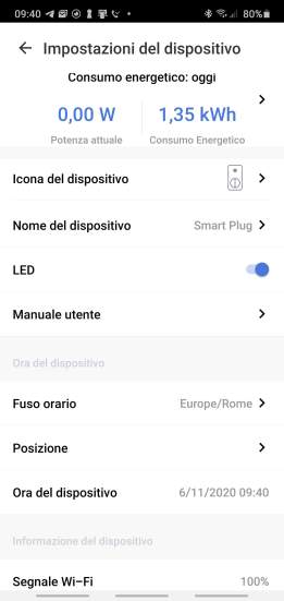 - Dall’app si può inoltre vedere sia il consumo energetico corrente e quello giornaliero totale sia anche avere un grafico dei consumi nel tempo.