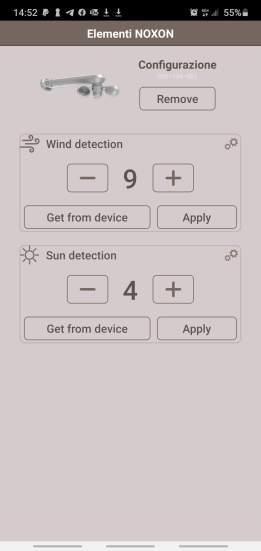[NOTA MIA: livello minimo 1 -> si attiva l’avvolgimento con poco vento (18 km/h) / lo svolgimento con poco sole (3 Klux); livello massimo 9 -> si attiva l’avvolgimento con molto vento (55 Km/h) / lo svolgimento con molto sole (45 Klux).