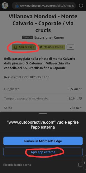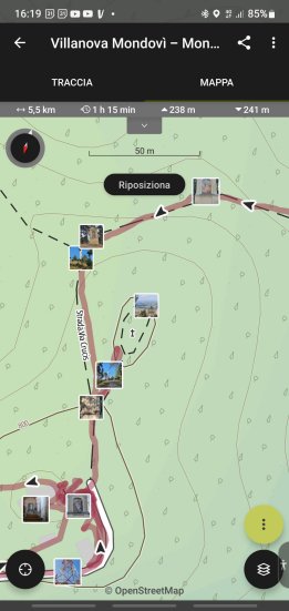 NOTA BENE: se uno ha installato l’app ViewRanger sul proprio smartphone, selezionando il link di un percorso, questo viene visualizzato per default aprendo automaticamente quell’app che consente ripercorrerlo ma che mostra le foto senza una loro collocazione specifica: per cui, se si desidera invece vedere la posizione sulla cartina degli scatti relativi alle foto associate, deve essere aperto manualmente il browser del telefonino e deve essere inserire l’indirizzo URL della traccia direttamente nella sua barra di ricerca).