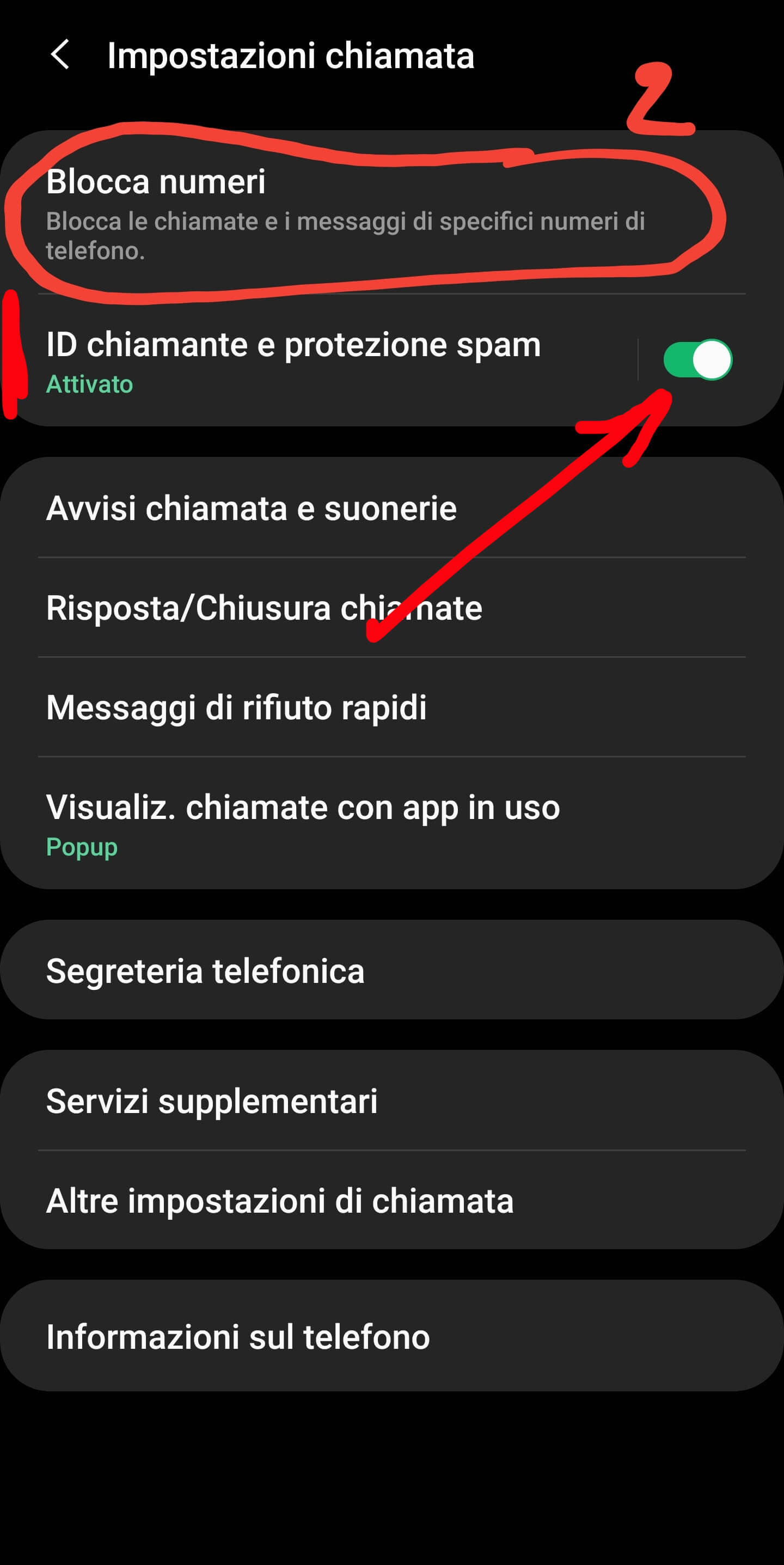 - Utilizzare una funzionalità spesso presente negli smartphone di diversi costruttori e che segnala/blocca chiamate da numeri presenti in blacklist in Rete