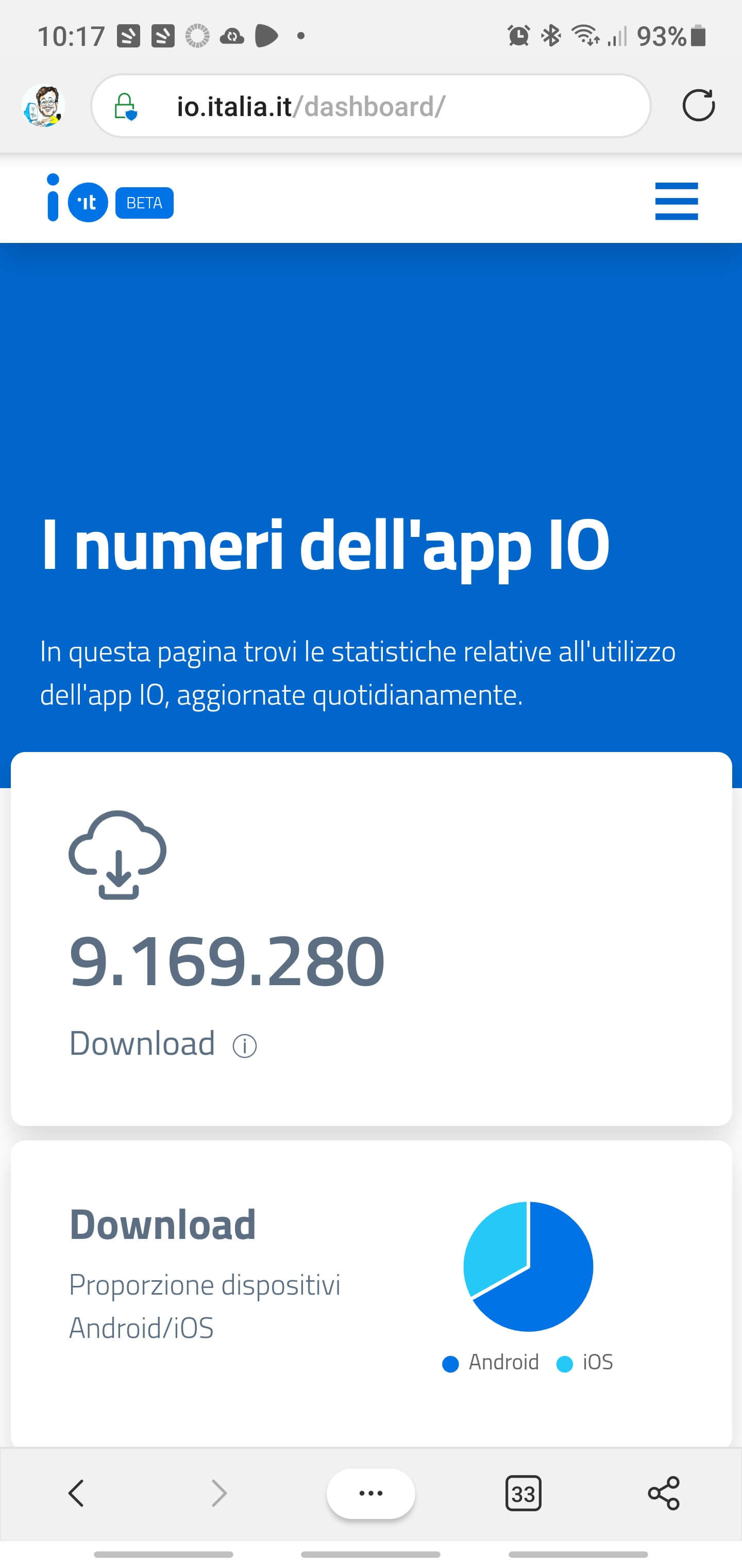 Insomma, benché ci fossero state polemiche sull’app Immuni (che riguardava la nostra salute ed era basata su meccanismi di privacy molto spinti) scaricata tra mille polemiche da un numero relativamente piccolo di persone, anche quella IO.it, che sembrava essere stata installata a manetta, ha raggiunto più o meno la medesima soglia ed ora, anzi, stà addirittura regredendo lentamente!