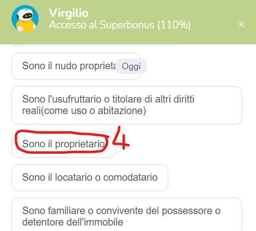 Se si sceglie, invece, precedentemente il ramo dell’ultima opzione (“non devo eseguire interventi trainanti o li ho già eseguiti“), dato che avevamo detto che potevo anche non realizzare interventi trainanti perché ci sono vincoli paesaggistici, vengono fornite le seguenti indicazioni: