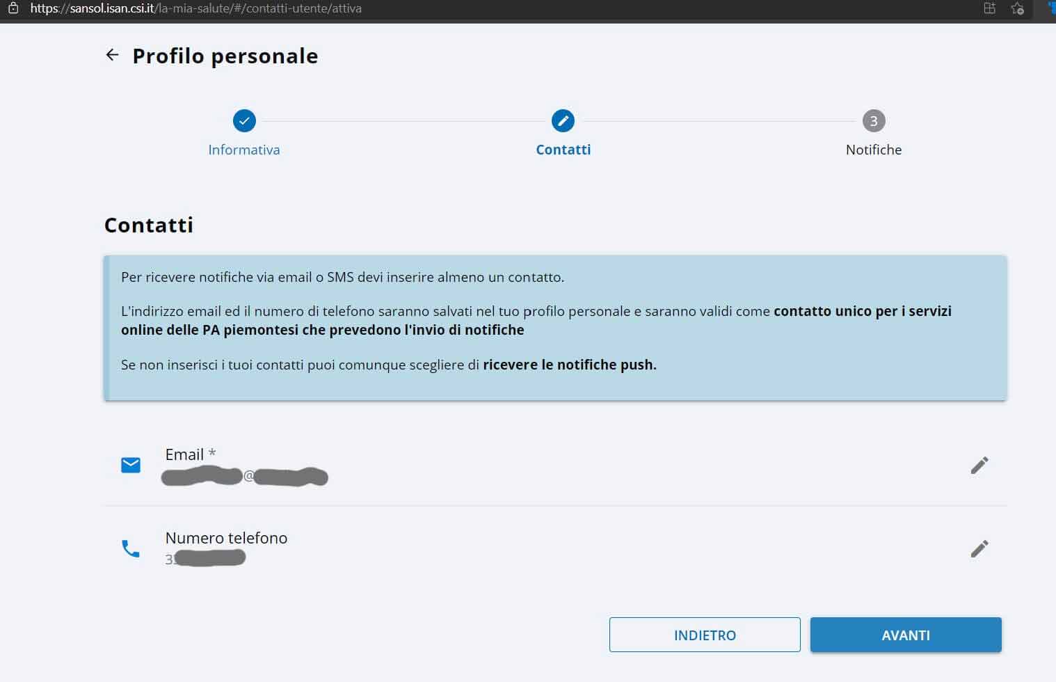 Personalmente, pur avendo indicato sia il numero di cellulare sia l’email, ho ricevuto un riscontro solo via SMS di avvenuta adesione alla vaccinazione: “Ti confermiamo che la tua preadesione per la vaccinazione antiCOVID ha avuto esito positivo. http://www.ilpiemontetivaccina/info“: