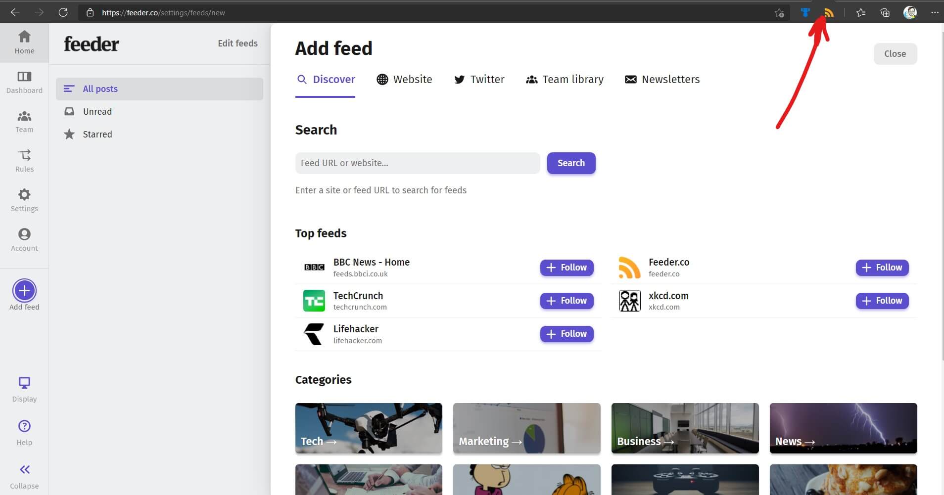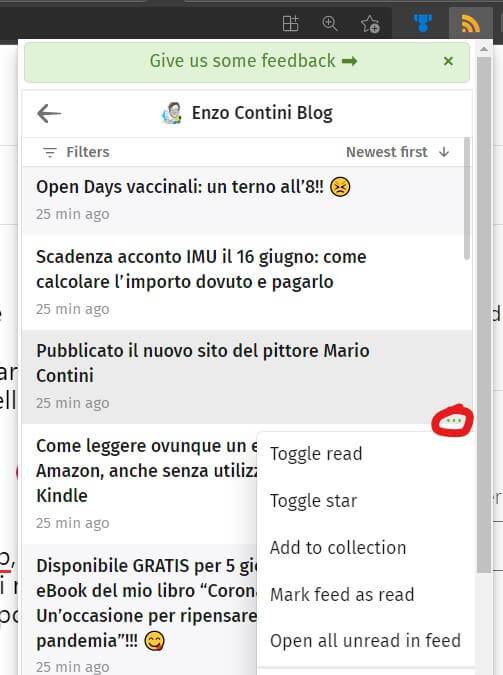 Ad esempio il browser Edge ne possiede diversi e in particolare io ho installato Feeder.co. Ovviamente un’analoga estensione esiste anche per il browser Chrome.