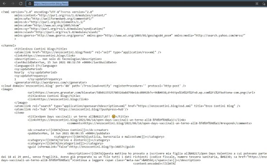 Insomma avere a portata di mano un lettore di RSS, ad esempio consente agevolmente di vedere l’elenco degli ultimi post pubblicati da un sito di mio interesse ed eventualmente navigare in qualcuno di questi. Infatti piattaforme queli WordPress generano automaticamente il file RSS associato a ciascuno dei suoi siti Web: https://enzocontini.blog/feed/ è quello generato per questo mio blog. Questi RSS Reader forniscono poi diverse funzionalità quali quelle di filtraggio, d’identificare quelle di maggior interesse, ecc…