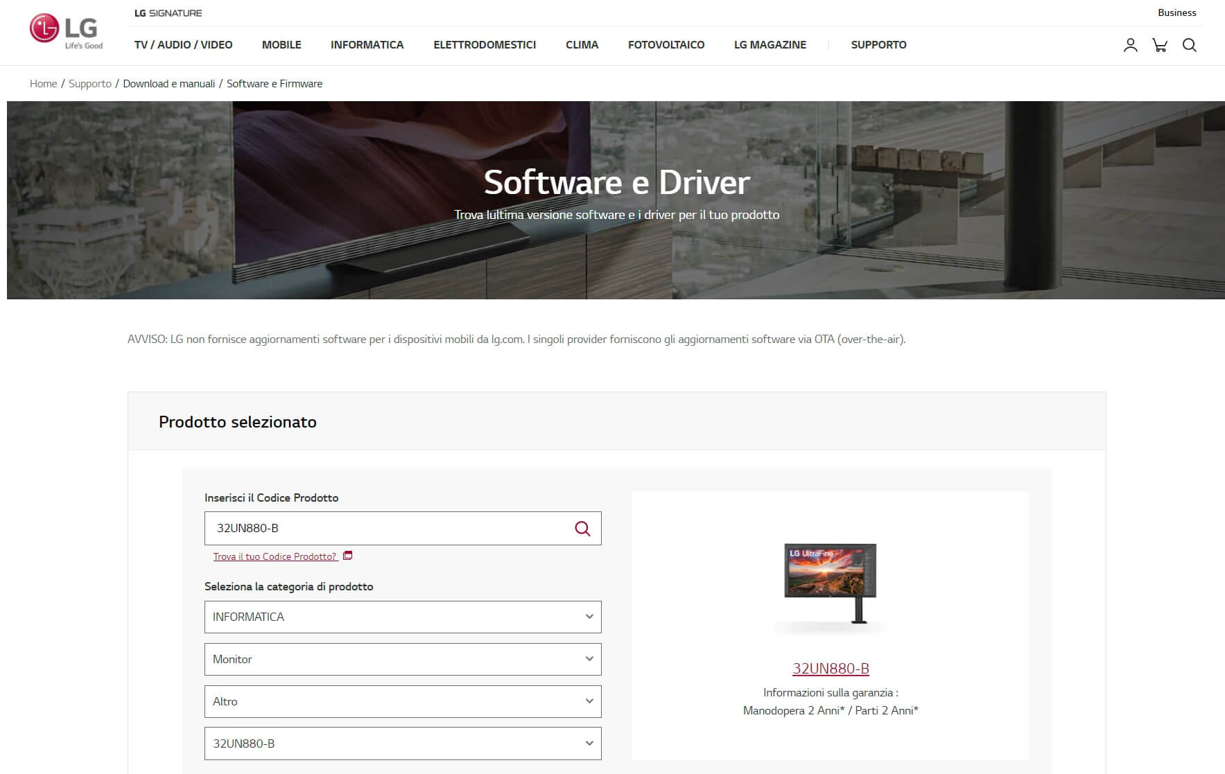 - LG 32UN880-B Supporto prodotto: Manuali, garanzia e altro LG Italy