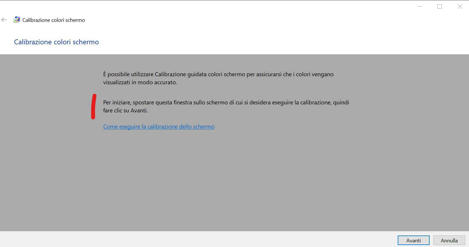 Si noti poi che, se uno cerca di calibrare il colore con il tool disponibile in Windows 10 (Control Panel -> Calibra colore dello schermo), appare durante la procedura il seguente avvertimento: “Questo schermo utilizza attualmente un profilo di colori con gamma ampia. Tramite Calibrazione colori schermo verrà creato un profilo colori con gamma convenzionale, che potrebbe risultare inadeguato per lo schermo e causare distorsioni nella visualizzazione dei colori. Continuare comunque?“