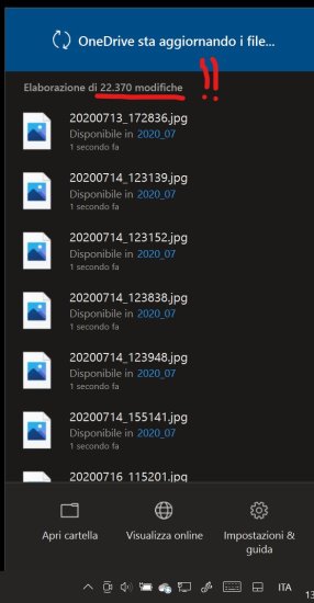 Questo può avvenire quando, ad esempio, si sono inseriti molti dati nella cartella di OneDrive che viene sempre sincronizzata nel cloud o anche solo se si è deciso di cambiare lo stato di alcune cartelle (e.g. Libera spazio, Conserva sempre su questo dispositivo) per cui questa modifica comporta magari una sincronizzazione di migliaia di file presenti in quelle, anche di grandi dimensioni quali, ad esempio, foto e video.