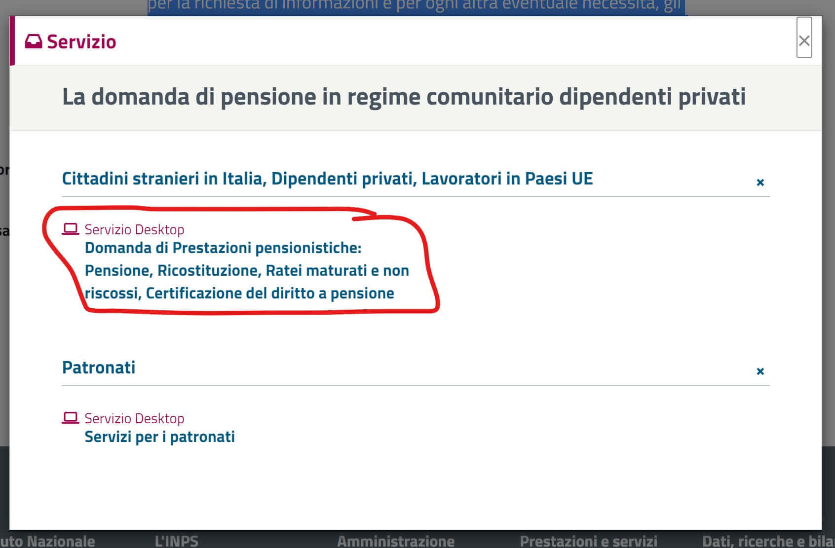 Andando a vedere il sito dell’INPS, si trova infatti un servizio online relativo alla domanda di pensione: