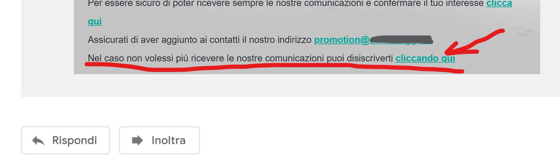 Per annullare le iscrizioni è sufficiente cliccare sul link Annulla iscrizione che spesso compare in fondo alla email o, se non esiste tale possibilità e magari non è sufficiente operare così per non ricevere più nulla da quel mittente, si può richiedere di bloccare tutte le email che provengono da quella fonte premendo sui tre puntini in alto a destra e quindi selezionando Blocca xxxx@yyyy: