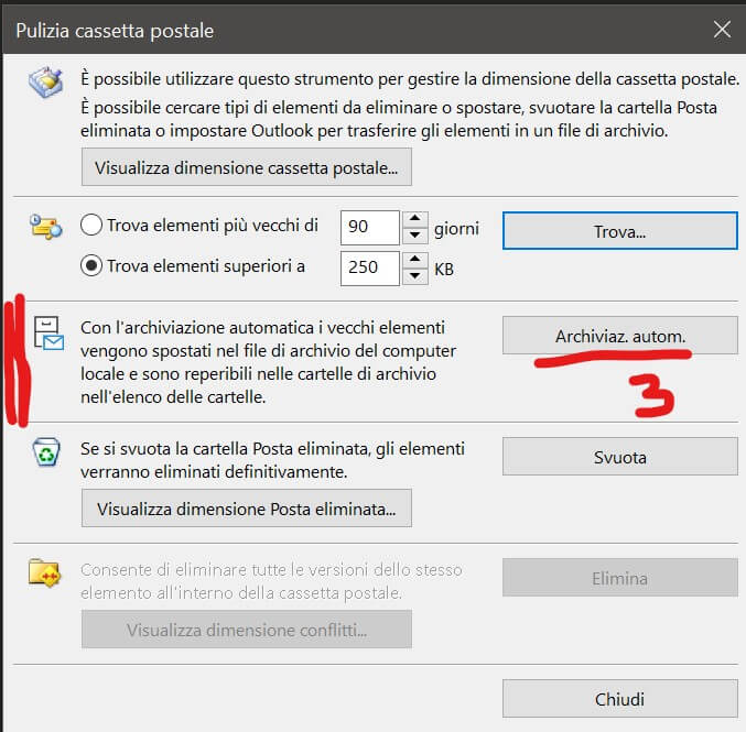 Ovviamente eliminare ciascuna email puntualmente è un’operazione estremamente lunga e che può non portare (se non dopo ore) ad un effetto sostanziale in termini di recupero di spazio di memoria: molte sono infatti le mail di piccola dimensione e l’eliminazione di alcune di queste non porta certamente un grande vantaggio!