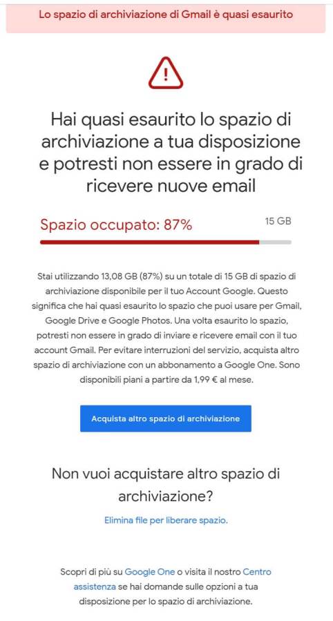 Come fare quando si è quasi esaurito lo spazio di archiviazione su Gmail