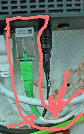 Se uno ha un collegamento FTTH, allora al router arriva un cavo sottile (fibra) con un attacco come in figura e non un cavo più grosso (rame) con un attacco diverso, come si ha nel caso di un collegamento in fibra FTTC dove in realtà la fibra arriva solo a un armadio collocato in strada, magari anche a chilometri di distanza!