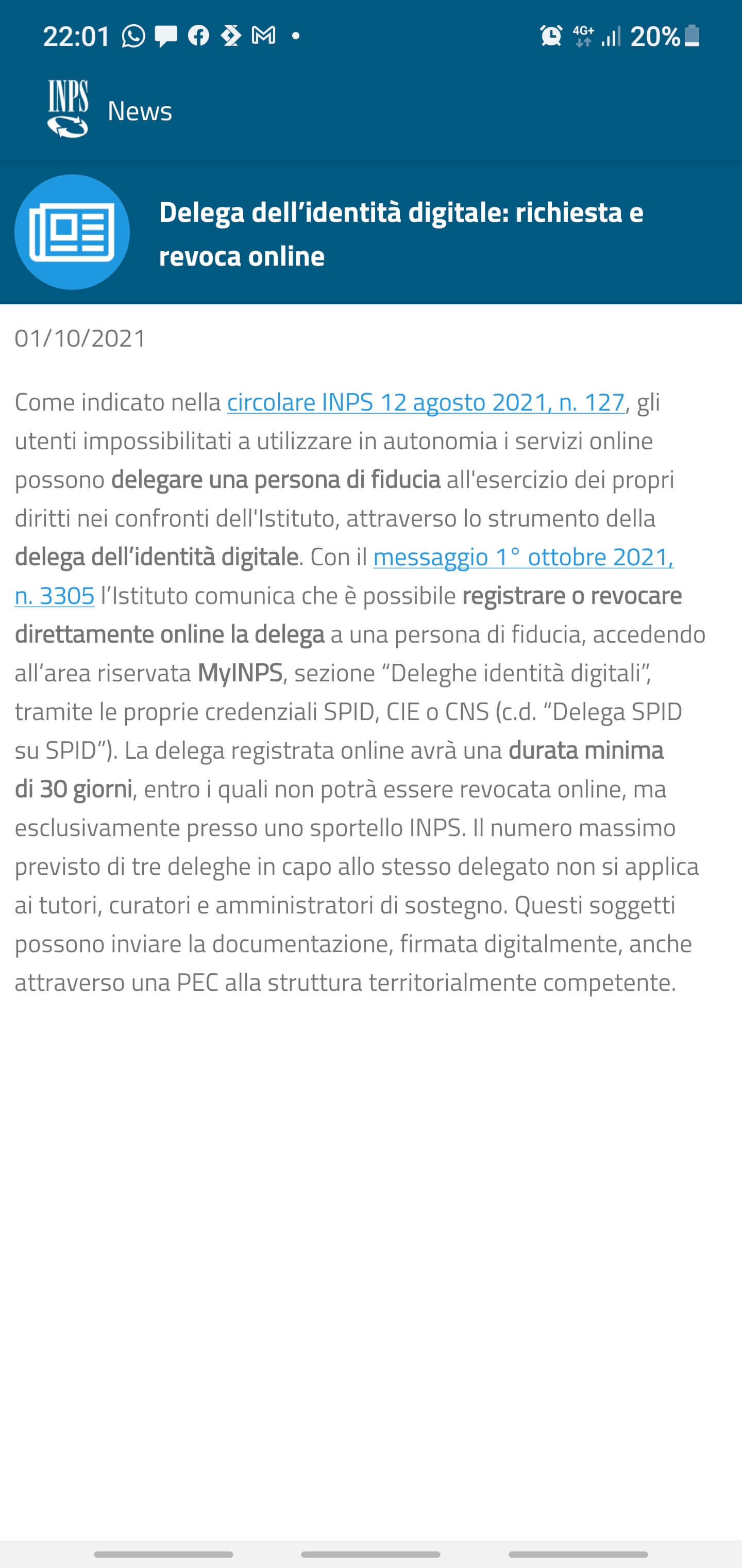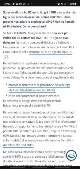 Quindi, se uno è invalido e necessita di un aiuto per operare sul aiuto dell’INPS, dal 16 agosto 2021 può delegare figli o altre persone di fiducia a effettuare l’accesso per tuo conto ai servizi online con il loro SPID, come indicato nella circolare INPS 12 agosto 2021, n. 127.