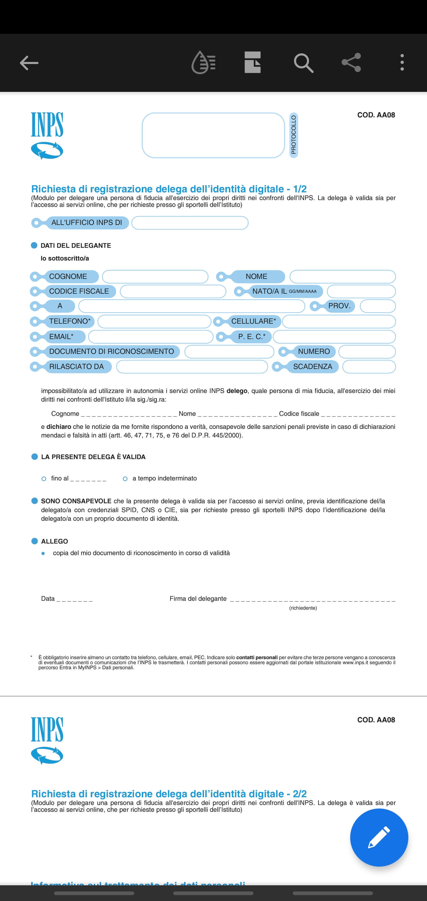 La richiesta di delega deve essere presentata fisicamente presso gli sportelli INPS.