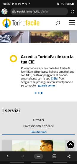 L’altra possibilità è avere una Carta d’Identità Elettronica con relativo PIN anche se, nel caso in cui uno non l’abbia già, richiederla sembra non sia sempre così agevole. Nella pagina del sito del Comune di Torino relativo alle modalità di prenotazione, vien detto: “L’appuntamento può essere richiesto autonomamente, anche in assenza di credenziali SPID, CIE o Torino Facile, con le seguenti modalità: