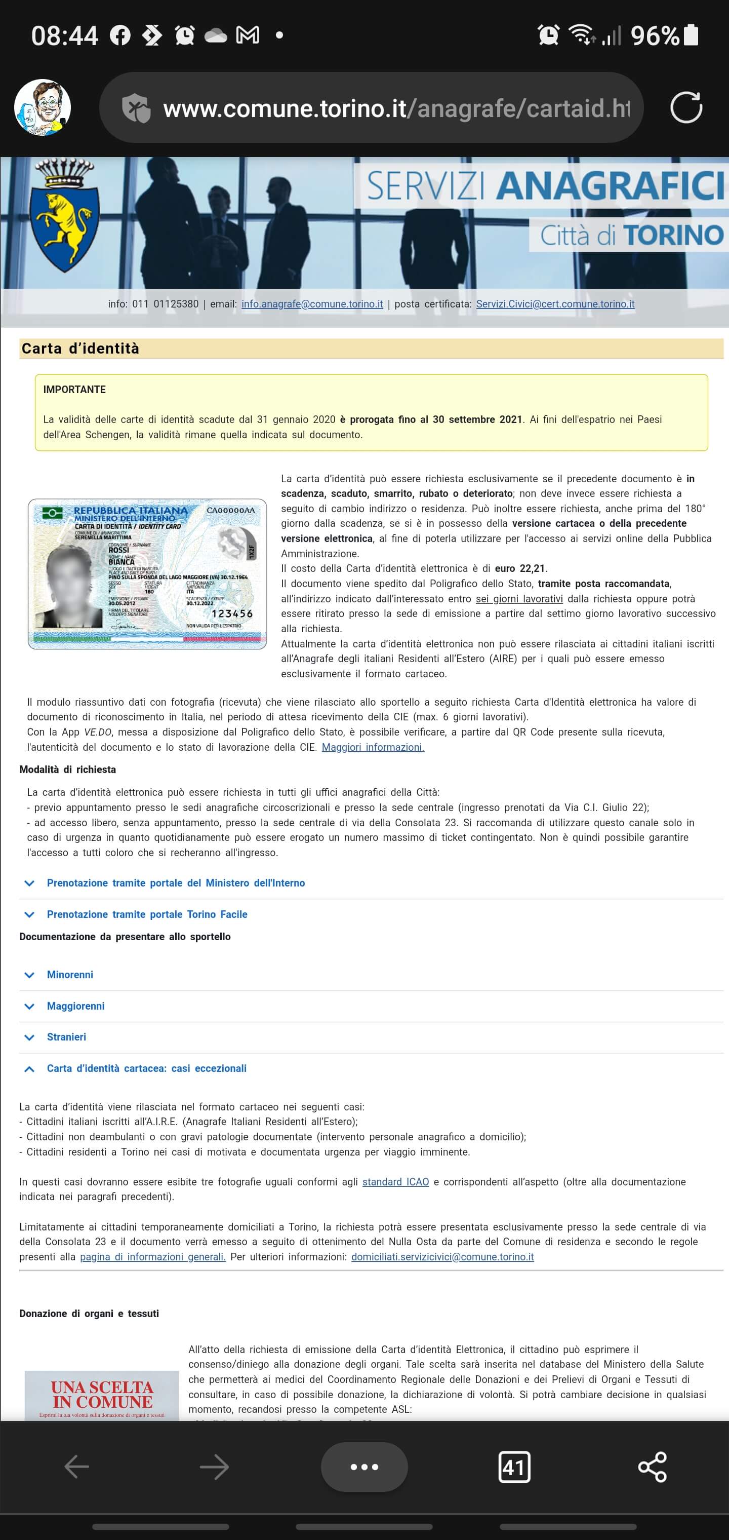 Sempre da una pagina del sito del Comune di Torino si legge: “Il costo per l’emissione è di Euro 22,21 nel caso del documento elettronico.