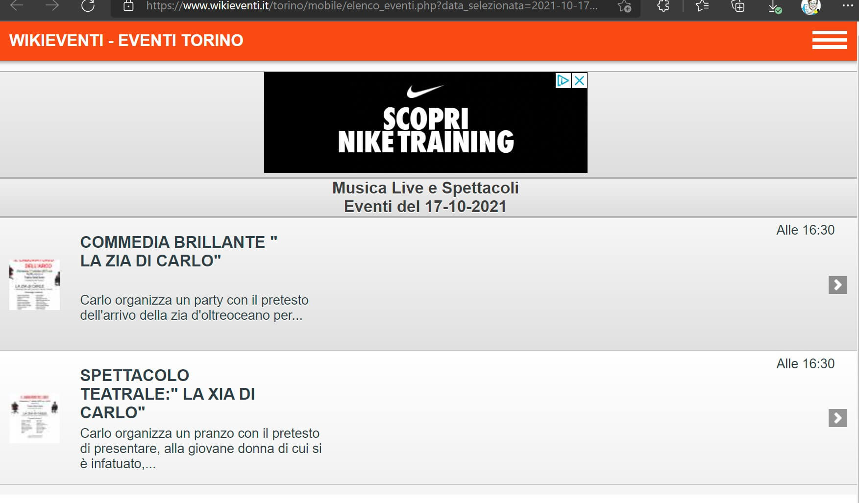 - Teatro Sant’Anna di Torino – Domenica 17 ottobre 2021, ore 16:30: “La zia di Carlo”, spettacolo teatrale divertente